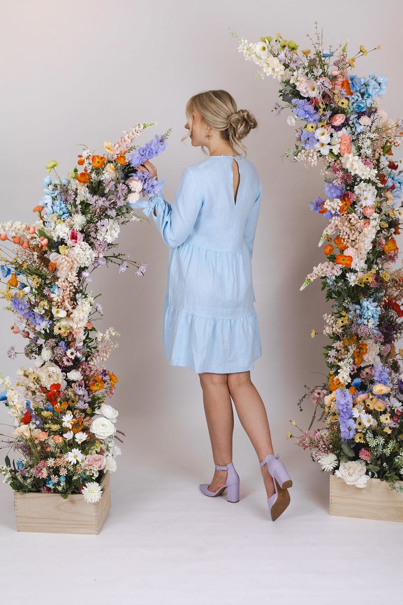 Hailey Dress on pellavainen kerrosmekko, jossa tyylikkyys ja mukavuus kohtaavat täydellisesti! Tämä polvimittainen kerrosmekko tuo iloa ja tyyliä jokaiseen hetkeen. Hailey Dressin kruunaa sen upeat rusettihihat, jotka tuovat ripauksen eleganssia ja naisellisuutta jokaiseen asuun. Takana oleva halkio ja pieni nappi eivät ainoastaan korosta tyylikkyyttä, vaan tekevät myös pukemisesta helppoa ja antavat asulle hienostunutta viimeistelyä.