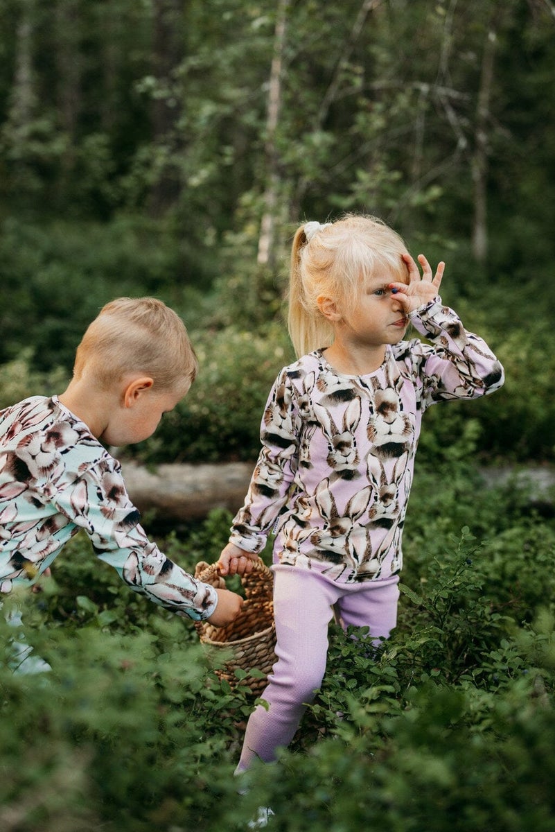 Bunny Ocean -pitkähihainen trikoopaita yhdistää Henna Adelin rakastetun Bunny-kuosin ja raikkaan turkoosin Ocean-sävyn. Tämä luomupuuvillasta valmistettu paita on miellyttävän pehmeä ja hengittävä, tuoden mukavuutta lapsen jokaiseen päivään.