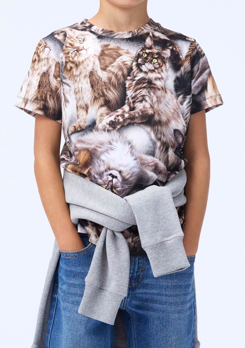 Upea t-paita Mololta hauskalla kissa aiheisella kuvioinnilla. Koululaistenkin suosikki!