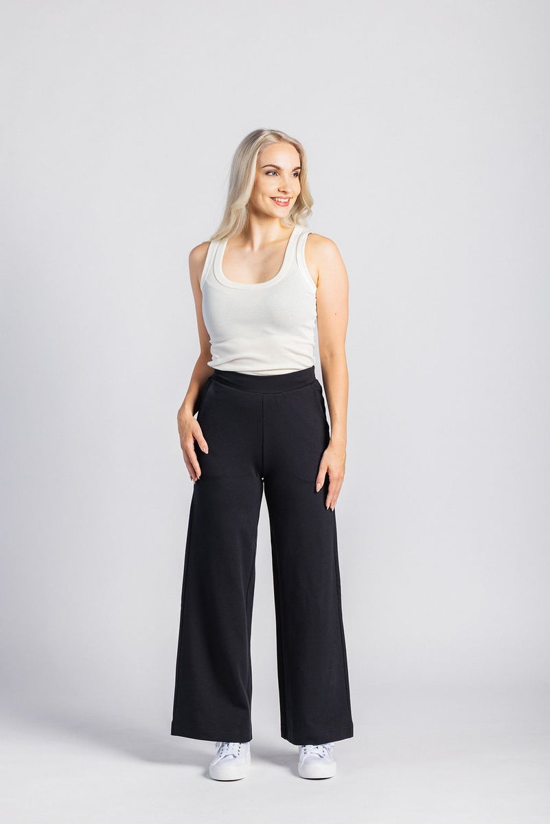 Nakoan Comfy Pants -housut ovat arjen luottovaate, jossa yhdistyvät napakka istuvuus ja erinomainen käyttömukavuus. Mustat housut on valmistettu laadukkaasta Ponte Roma -neuloksesta, joka joustaa kauniisti ja säilyttää ryhtinsä koko päivän.