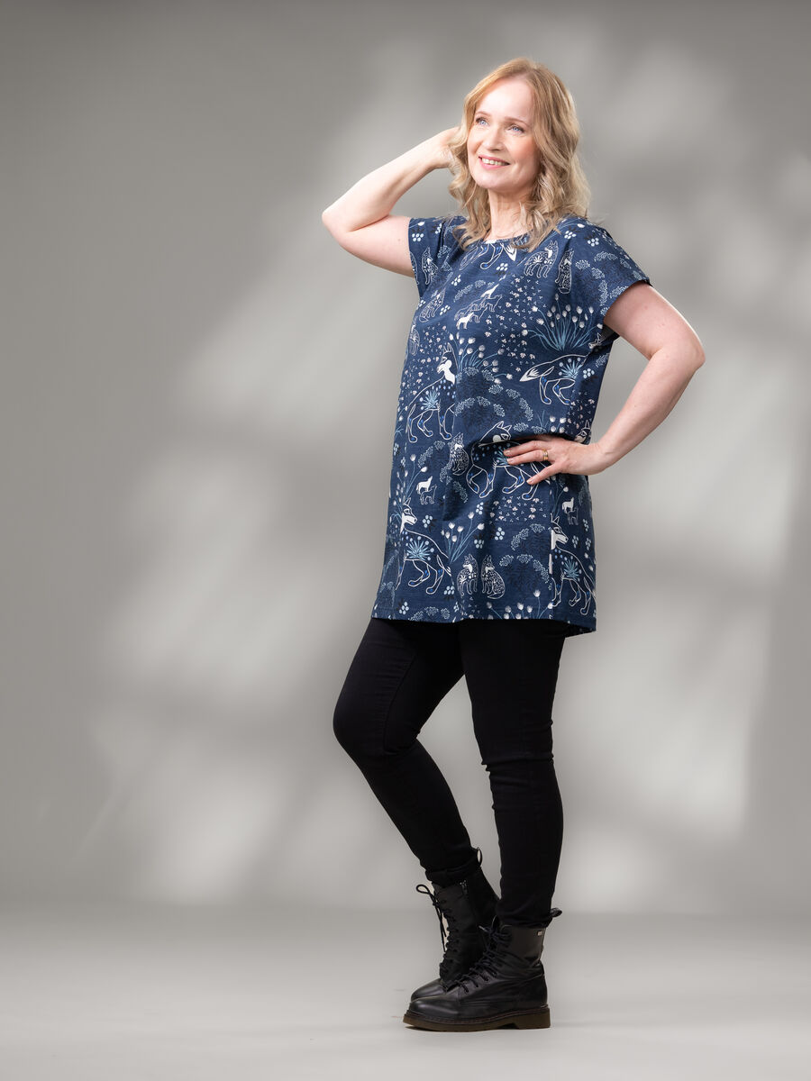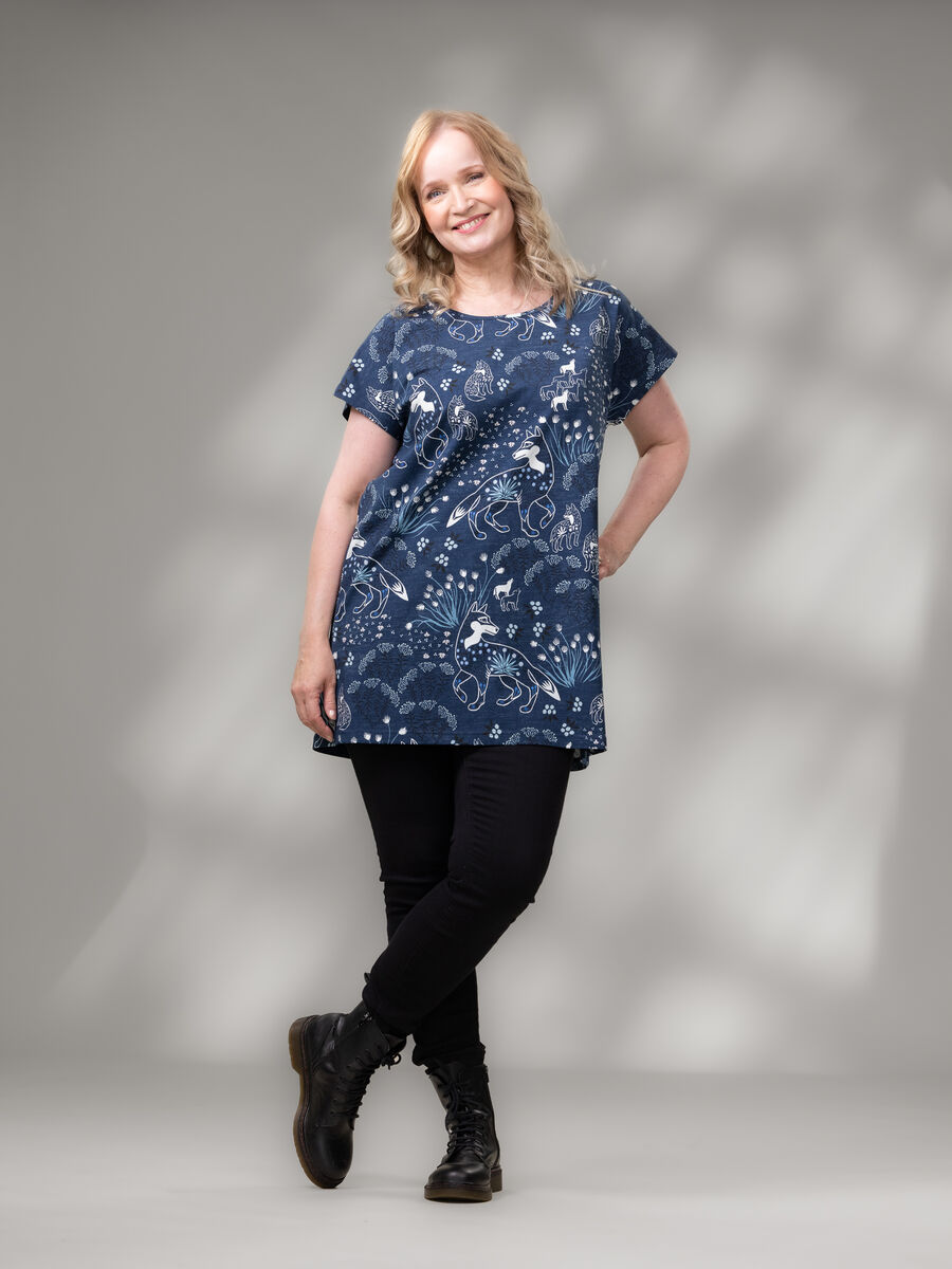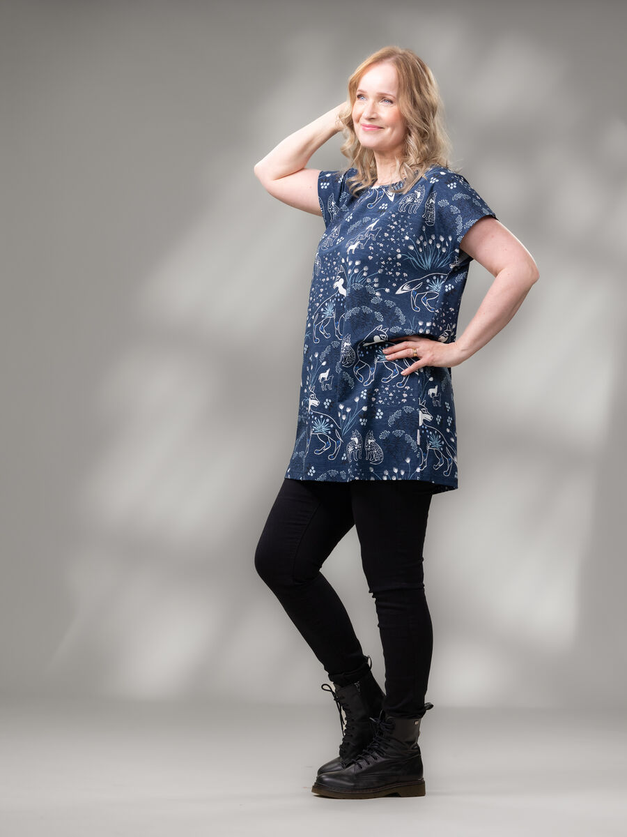 TUULItunika on ihana laatikkomallinen pitkä t-paita! Yhdistä tämä monikäyttöinen paita bikersien tai vaikkapa farkkujen kanssa. Kylmemmilllä säillä pue lisäksi kaveriksi neuletakki.
