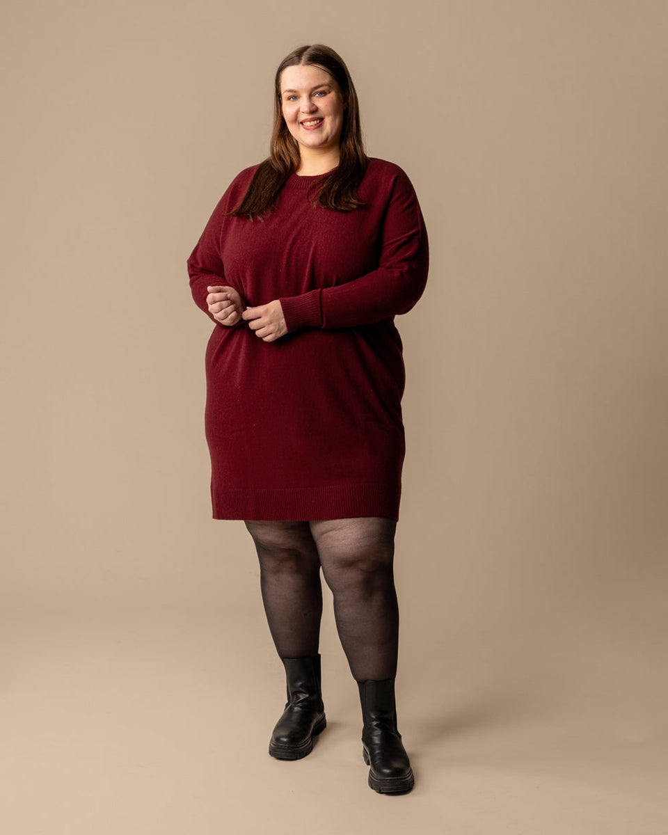 Kajo – tyylikäs ja lempeä neulemekko 100% mulesing-vapaata merinovillaa. Kauniisti laskeutuva neulemekko lämmittää varmasti! Sävynä kaunis burgundy.