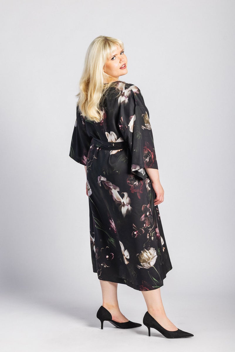 Stella Dress on kaftaanityylinen mekko, joka yhdistää ajattoman tyylikkyyden ja käyttömukavuuden. Väljä leikkaus ja 3/4-pituiset hihat tekevät siitä täydellisen valinnan niin arkeen kuin juhlavampiinkin hetkiin. Mukana tuleva vyö antaa mahdollisuuden muotoilla mekkoa oman tyylin mukaan.
