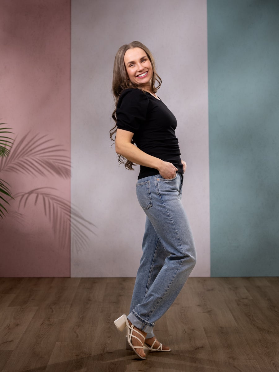 Raikas ja naisellinen lyhythihainen paita, jossa on viehättävät puhvihihat ja käytännölliset kuminauhat hihansuissa. Paidassa on kaunis, pyöreä pääntie ja tyköistuva miehusta. Tämä persoonallinen t- paita on täydellinen valinta kesäpäiviin. Yhdistä FRIDAn kaveriksi tilanteesta riippuen hame, shortsit tai tyylisi mukaiset housut. Asustamalla FRIDApaita on mainio valinta myös juhlavaan menoon.