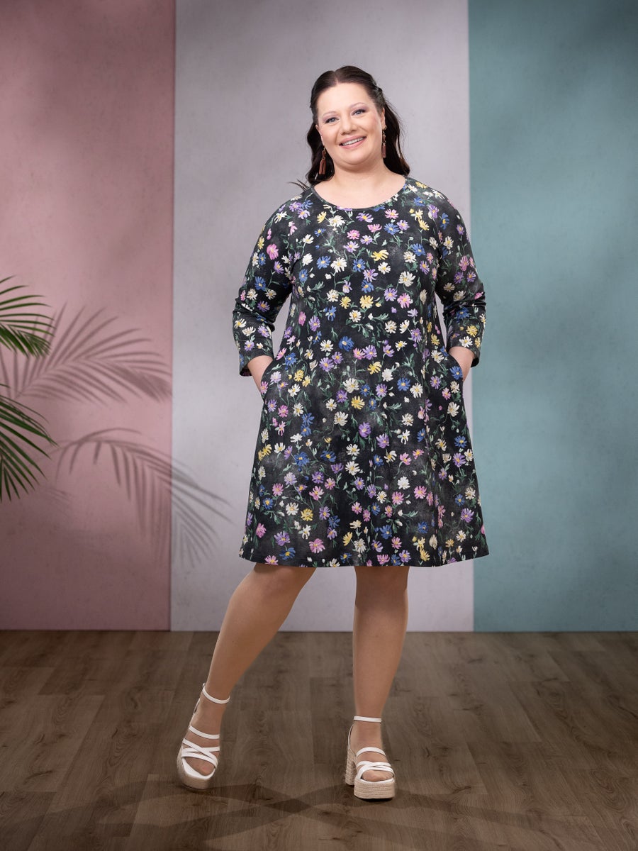 Versonpuoti, VERSOmekko 3/4 hiha, KAHVILASSA Musta/Pastelli