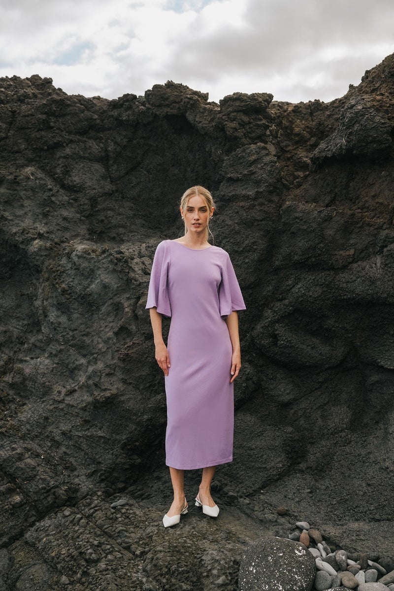 Vivienne Dress on veistoksellinen ja skandinaavisen elegantti mekko, jossa pelkistetty muotoilu kohtaa näyttävät yksityiskohdat. Mekko on valmistettu laadukkaasta Ponte Roma -neuloksesta, joka on ryhdikäs, mutta poikkeuksellisen pehmeä ja miellyttävä ihoa vasten. Myötäilevä leikkaus luo imartelevan siluetin, ja midipituus viimeistelee ajattoman hienostuneen kokonaisuuden. Takana kulkeva vetoketju lisää käytännöllisyyttä, ja leveät, kellomaiset hihat tuovat ilmeeseen näyttävyyttä ja liikettä. Pääntie on edestä kevyesti venemäinen ja takaa syvempi v mallinen – yksityiskohta, joka tuo mekkoon ripauksen yllätyksellisyyttä.