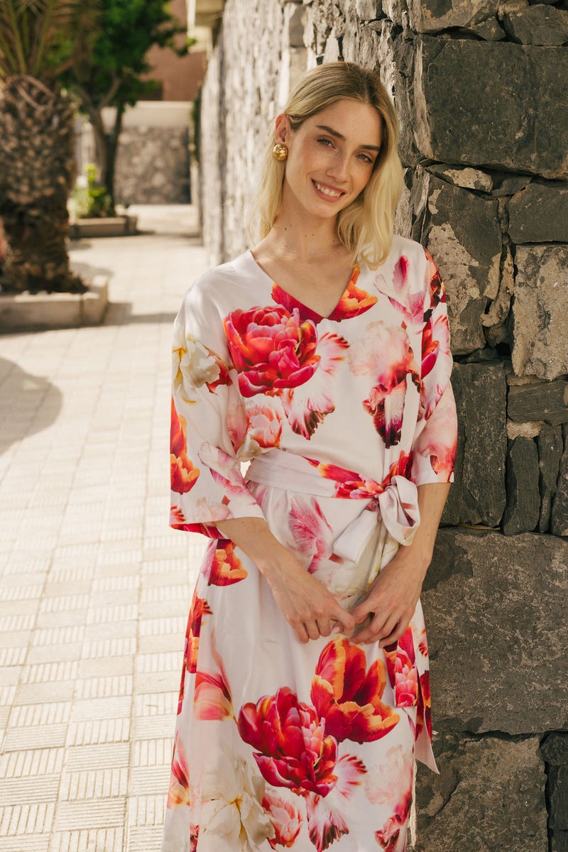 Stella Dress on kaftaanityylinen mekko, joka yhdistää ajattoman tyylikkyyden ja käyttömukavuuden. Väljä leikkaus ja 3/4-pituiset hihat tekevät siitä täydellisen valinnan niin arkeen kuin juhlavampiinkin hetkiin. Mukana tuleva vyö antaa mahdollisuuden muotoilla mekkoa oman tyylin mukaan.