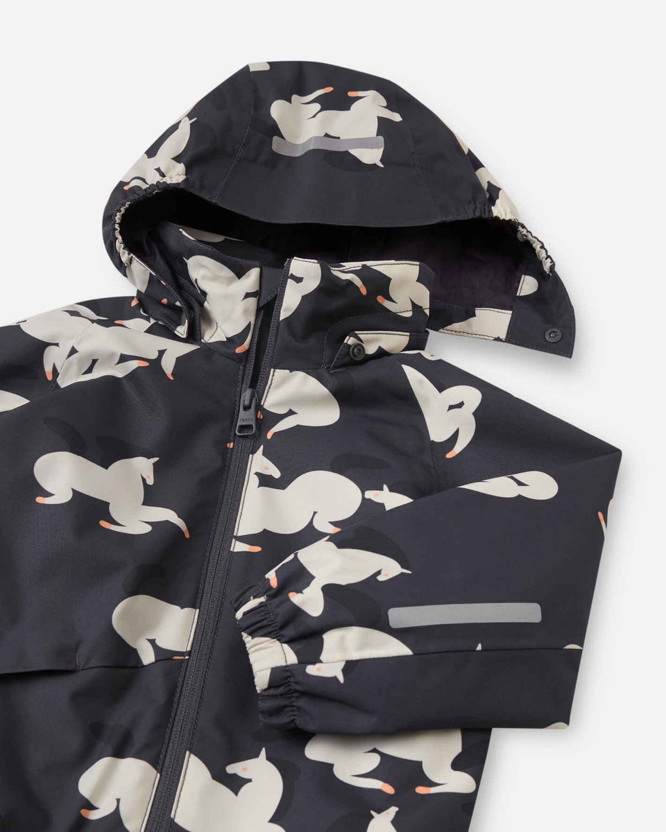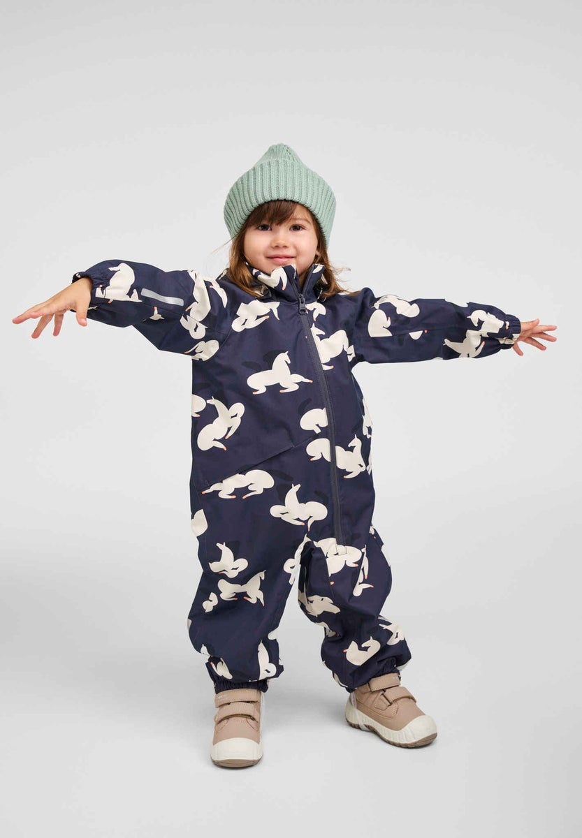 Vedenpitävä, hengittävä välikausihaalari. Suojaa lasta mukavasti joka säässä.
