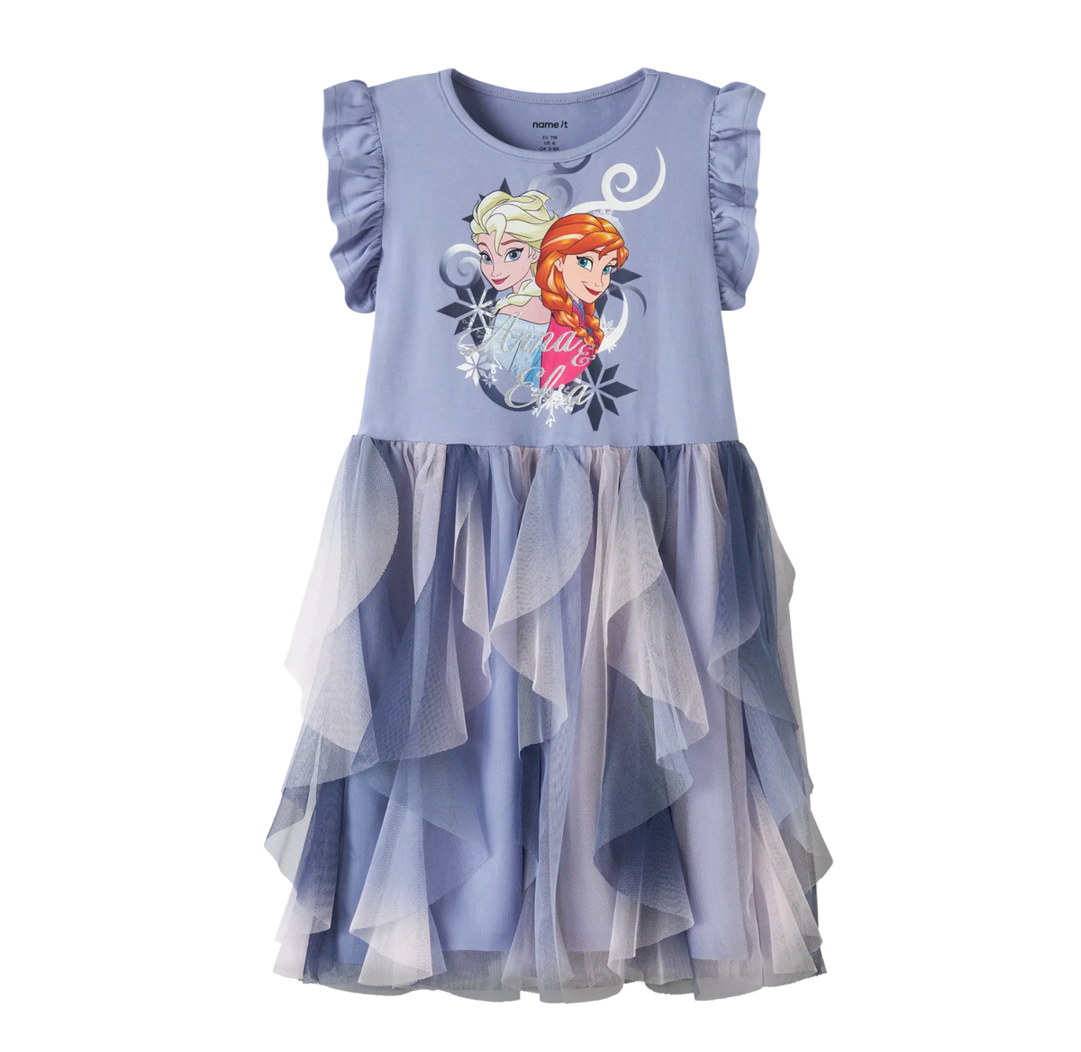 Suloinen lyhythihainen Frozen aiheinen lasten mekko upealla tyllihelmalla Name Itiltä.