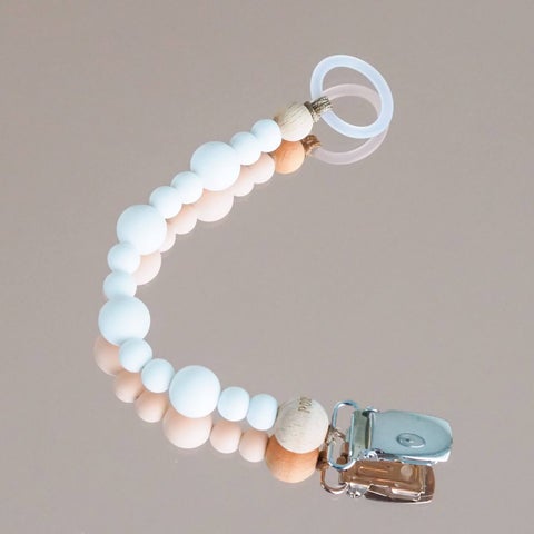 Voit puhdistaa nauhan vedellä ja saippualla. Tuttinauhaan saat kiinni kaikki tutit, sillä mukana tuleva silikonirengas venyy eri mallisiin tutteihin. Klipsu on nikkelitön. Emme suosittele puu- ja muoviosien keittämistä tai pakastamista.